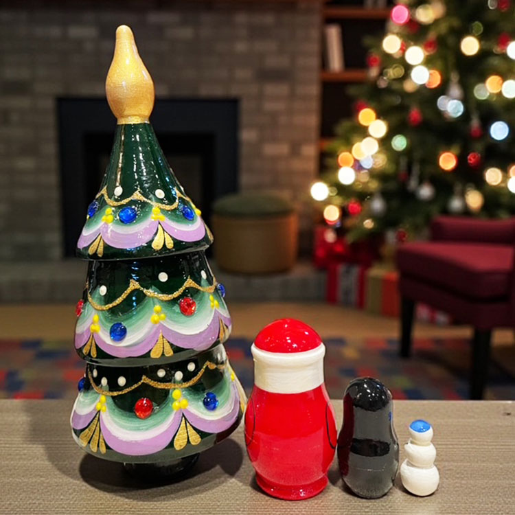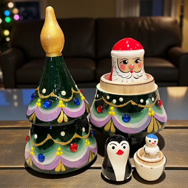 ロシアの正しいクリスマスツリーとサンタ、ペンギン、スノーマンの4つ組!