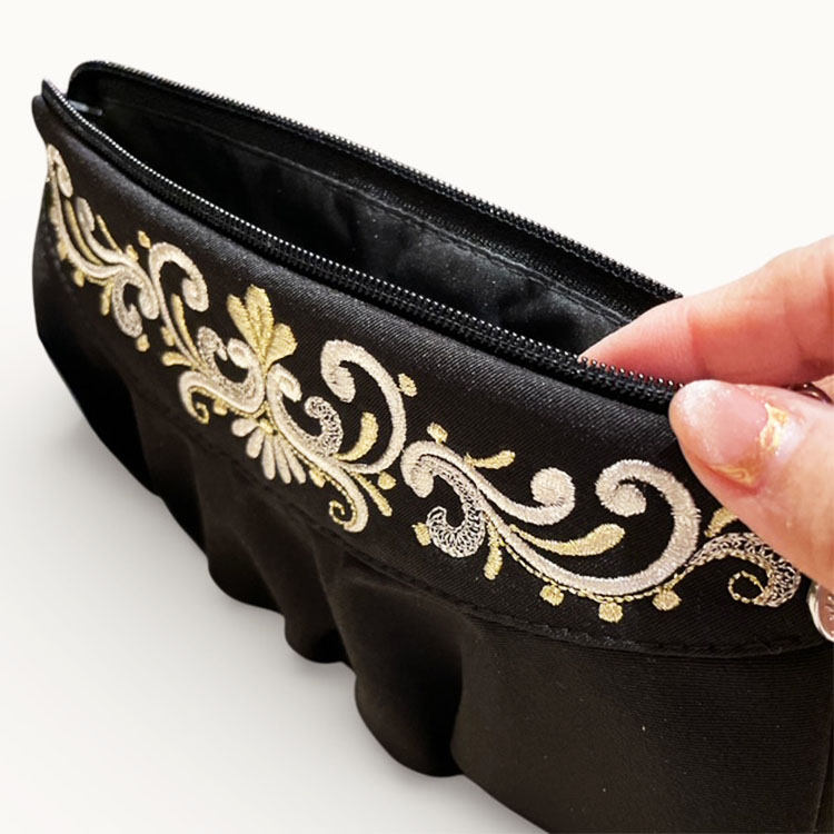 黒地にシルバーとゴールドの刺繍が美しく映えます。