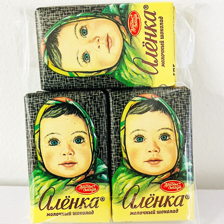 旧ソ連時代からある、アリョンカのパッケージは、現在でも不動の人気を誇ります。