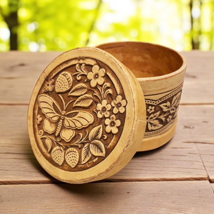白樺細工 ベレスタ 型押し小物入れ「蝶とイチゴ」b092