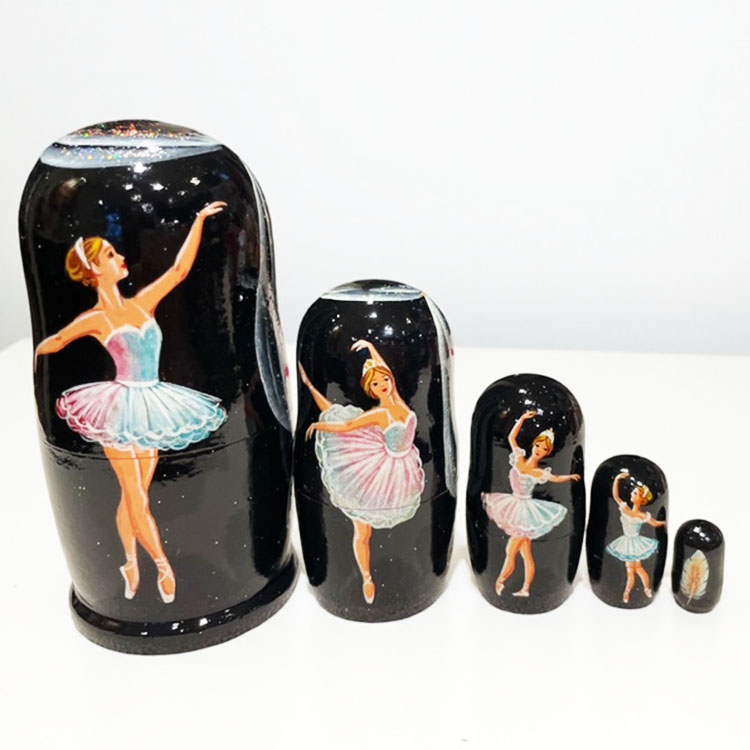 サンクトペテルブルグ産 バレエマトリョーシカ黒sp194-5p