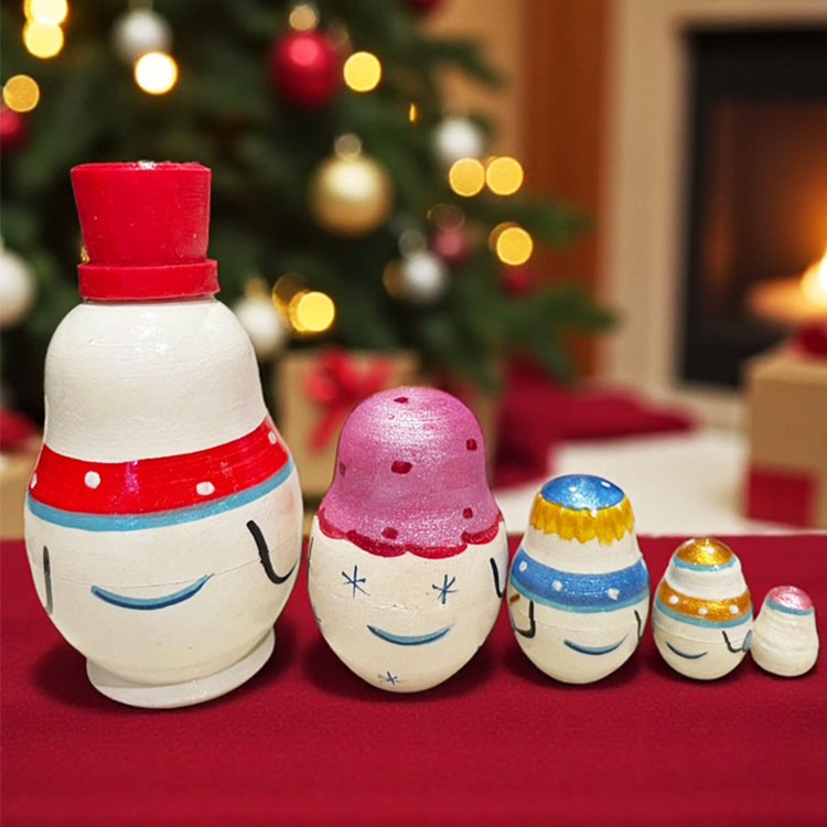 帽子を被った雪だるまファミリーのマトリョーシカ。