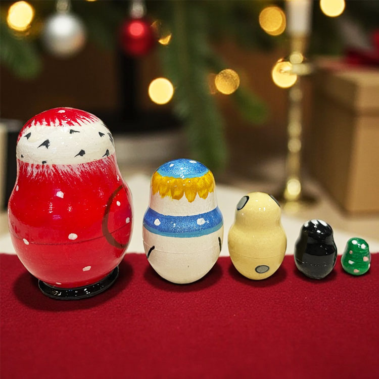雪だるまやくま、ペンギン、ツリーと多彩なラインアップで楽しいマトリョーシカです!