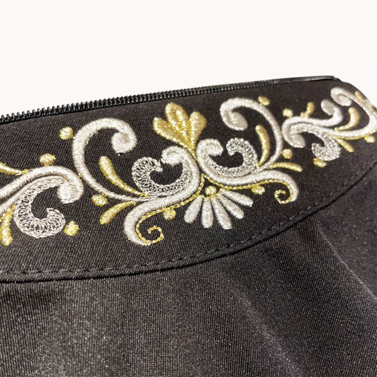 黒地にシルバーとゴールドの刺繍が美しく映えます。